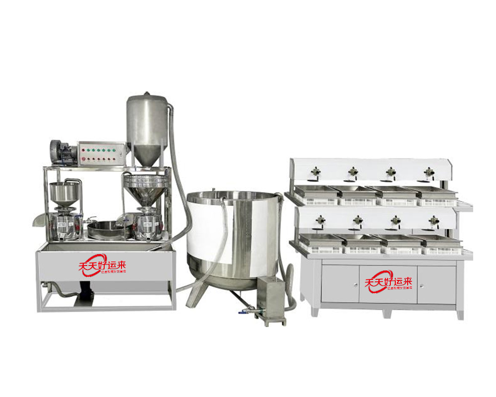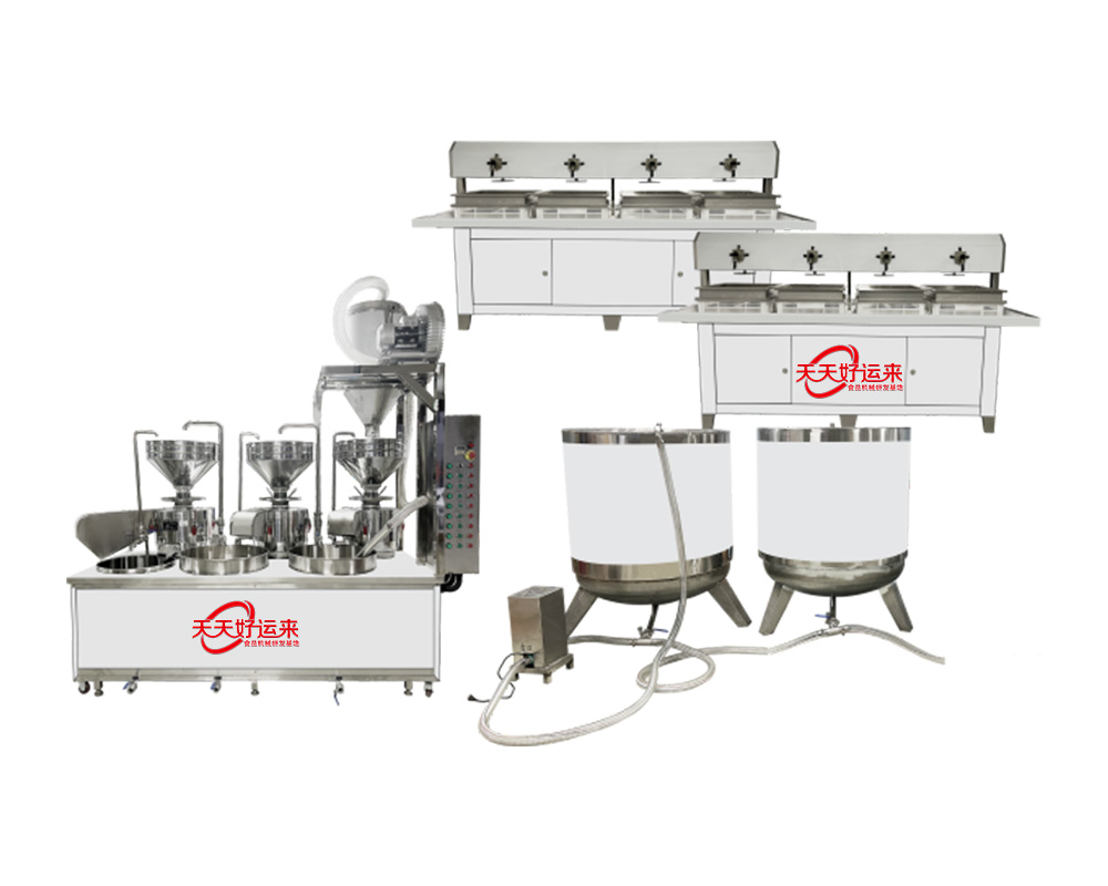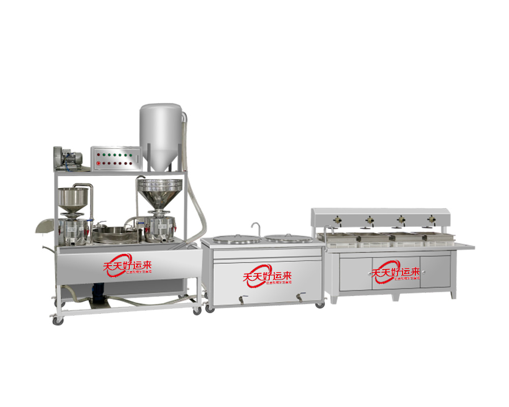 我公司生產豆腐機在國內是較早的企業,多年來通過對設備的不斷改進,利用現代科技與傳統工藝的完美結合。使設備外觀設計美觀、智能化高,操作簡單,主要有自動上豆系統、磨漿機系統、拌渣提升系統、煮漿桶(蒸氣機用戶自備)、成型機等組成。機器采用不銹鋼制造,干凈衛生,技術領先,質量可靠,經久耐用。實現了批量生產過程自動化,具有高效、省時、耗能低等優點。采用先進空真上豆技術和連續磨漿技術,瞬間加熱工藝,保證了蛋白質不受破壞,從而使生產出來的豆制品營養更豐富,味道更鮮美。工藝流程: 將浸泡好的黃豆由高速分離磨漿機加工,排出豆渣,產出的豆漿經過蒸汽加熱達到去腥,并煮漿均質,并添加輔助原料消泡、凝固劑(如鹵水、石膏、內脂、酸漿等)、成型和深加工處理便可產生出營養豐富的豆制品如:豆漿、豆腐腦、豆腐、豆干、豆皮、素雞、豆泡等制品,適用于大型賓館、超市、企業食堂、工程店及食品廠批量加工使用。